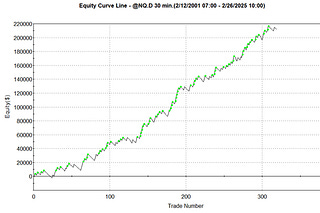 Profit Factor: 2.19 | Total Net Profit: $55,808 | Avg. Trade Profit: $260.79 | Max Trade Drawdown: $4,590 | # of Trades: 214 | Percentage Profitable…